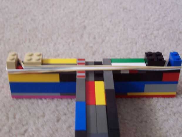 En este paso, poner en el mango del gatillo (del paso 1) y fije las bandas de goma. Tenga en cuenta que dado que esta pistola utiliza mi gatillo más viejos, las gomas de contra peso en la parte inferior tienen que ser más fuerte que las bandas de goma de disparo. (Me voy a hacer un A1.2, que va a cambiar el gatillo a la más confiable, más fácil de usar y más potente disparador de cambios).