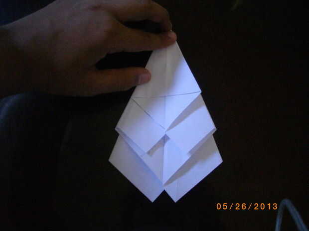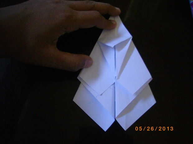 3) parte de la confusión: doblar las dos aletas, abrir y meter a