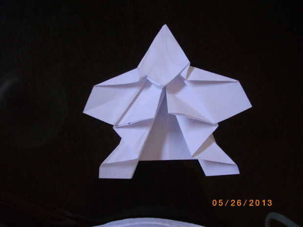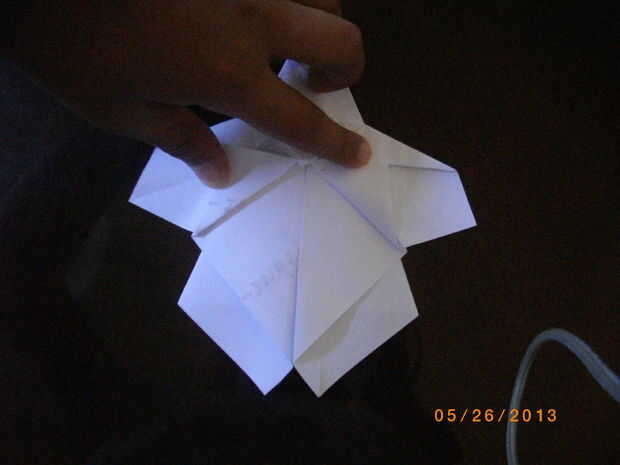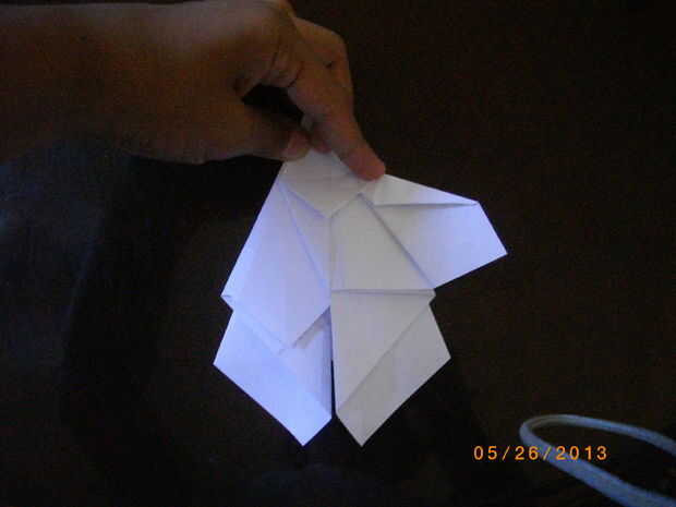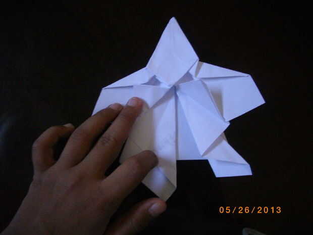 1) tome la segunda solapa y dóblalo diagonalmente hacia afuera para