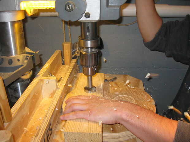 Taladre el agujero más grande en la ubicación deseada.  Esto fue una mofa para arriba por lo que es una desecho de 2 "x 4".  Fui tan profundamente como la broca, que era 1/2".