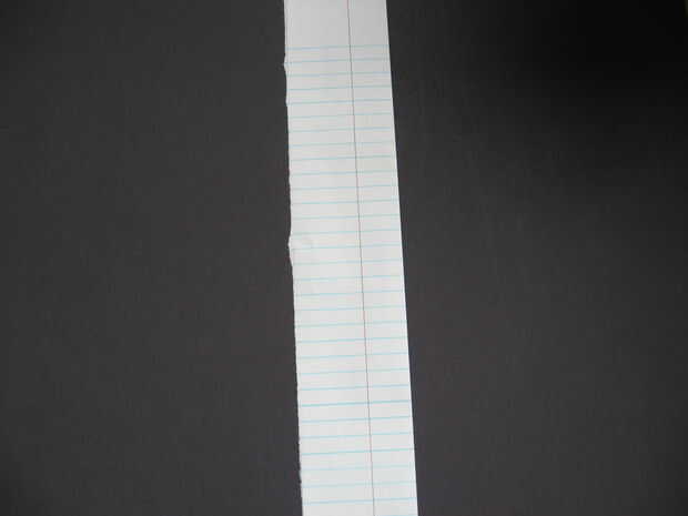 7. cortar los restantes 2 pulgadas de papel por la mitad para que tenga aproximadamente una pulgada en la parte inferior