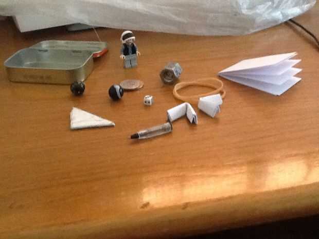 esto hice por aburrimientoPaso 1: agarrar Lo que necesita para obtener 1 Altoid tin 1finger cuchillo alicates/cables cortadores pato de cinta de luz y pequeñas cosas te quieres poner en élPaso 2: Cortar el agujero Su cuchillo y corte el agujero del m