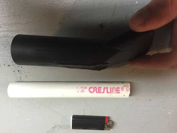 Esto hice calentando la pieza redonda con un mechero y había formado con un trozo de tubo de PVC de chatarra.