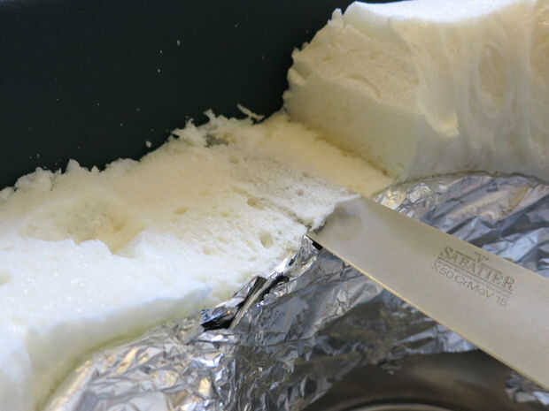 En este punto que esperaba el bote simplemente levantar fuera del contenedor lleno de espuma, pero no así. Realmente había apenas cualquier adherencia de la espuma a la maceta grande, por lo que realmente quita el bote de cerveza + aislamiento como uno! Ver foto.