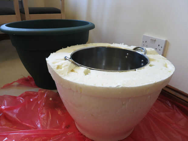 La belleza de esta espuma es lo fácil que es a la forma una vez que esté seco. Usando un cuchillo afilado, corte alrededor del borde de la maceta para que la espuma quede al ras. También cortar o rasgar la hoja que sobresale y retirar el exceso para exponer su olla.