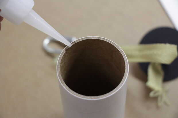 Aplique cianocrilato en el borde del tubo de acoplamiento como se muestra; hacer una tira bonita y gruesa todo el camino alrededor, cuando haya terminado, baje con cuidado el atajo a través del acoplador, el tabique hermético de cementación por el extremo del acoplador. Le ayudará a hacer este último bit contra una superficie (como la tabla con toallas de papel o algo) para que lo correctamente centrada. ADVERTENCIA-Este es un paso fácil para pegar los dedos al cohete. Use guantes y tenga mucho cuidado.