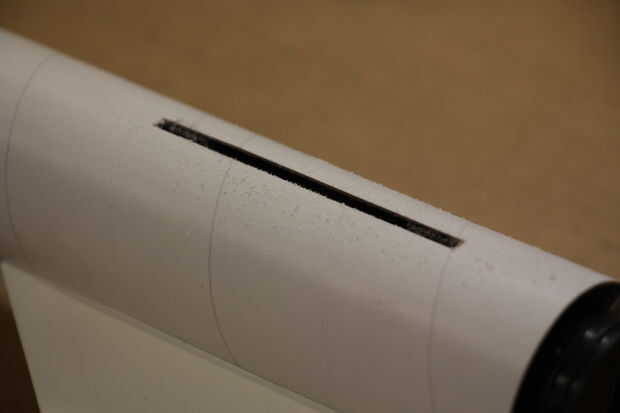 Con papel de lija de grano 120 ~, áspero el área alrededor de la aleta y lanzar estirón ranuras, como se muestra en la tercera imagen. Usted no tiene que (y no debería) arena muy profunda, basta con echar el brillo en el papel.