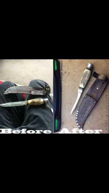 Tenía un cuchillo de 30 dólares y fue bastante contundente tan naturalmente, como cualquier creador, he intentado afila con una esmeriladora de banco. No exactamente el trabajo que bien, he intentado afilarla, relleno para arriba y trató de arreglar las muescas hice uso de la amoladora de banco y eso sucedió varias veces una y otra vez hasta que finalmente afilé sin hacen muescas. Pero al final era extremadamente delgada y era bastante flexible. Era aguda y fría mirando pero no realmente un cuchillo si usted no corta algo con ella sin rompa.
