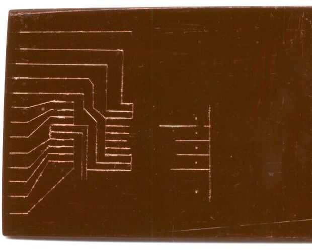 Usé un poco de veroboard como plantilla para la. 1" espacio y colocar el resto de los cortes según el trazado en el diagrama.