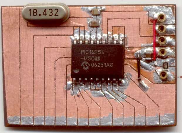 Yo he soldado un Microchip PIC16F54 en este foro, pero esta junta funcionará con cualquier pin 18 PIC así.