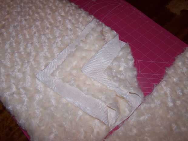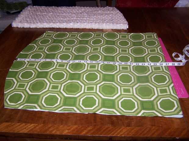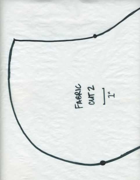 Doble la tela otra vez a lo largo por lo que las cuatro esquinas abiertas están juntos formando un rectángulo largo. Mida y marque 3 pulgadas en de las cuatro esquinas abiertas. Iniciar el corte en el borde del pliegue formando una curva que termina en la 3" marca.