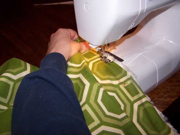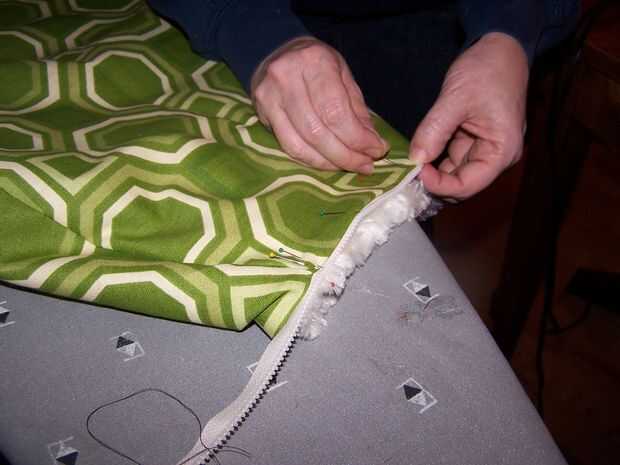 Vuelta Honda con revés contra revés y presione suavemente todas las costuras. Pulse en un dobladillo de 5/8" en el riel superior de ambos tejidos, perno forro a la tela. Inserte un lado de la cremallera (el lado sin el tirón) centrar la cremallera en la costura curvada. La cremallera se cose entre el forro y la tela. Parte superior coser el riel superior juntos asegurar la cremallera en su lugar (con pie de cremallera). Riel inferior puntada y costura de curva si se desea.
