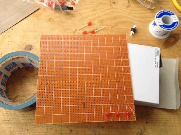 De todas formas, me decidí por una cuadrícula de 15 X 15 cm para acomodar mi 64 LED, con aproximadamente 1.7 cm entre cada LED.