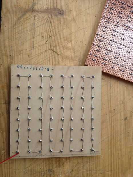 Después de quitar el plástico aislante del cable, comencé a tejer el hilo alrededor de los tornillos. Como el trabajo a lo largo de quité más de rojo aislante de plástico hasta que llegué hasta el último tornillo, donde dejé 15 cm de cable con el aislamiento en, a soldar más tarde a los 5V de la fuente de alimentación