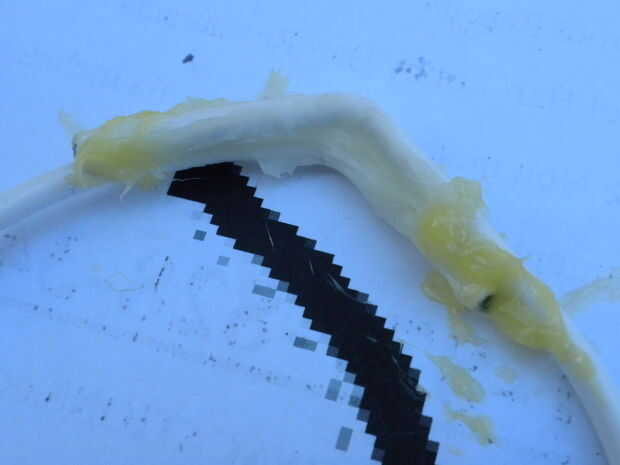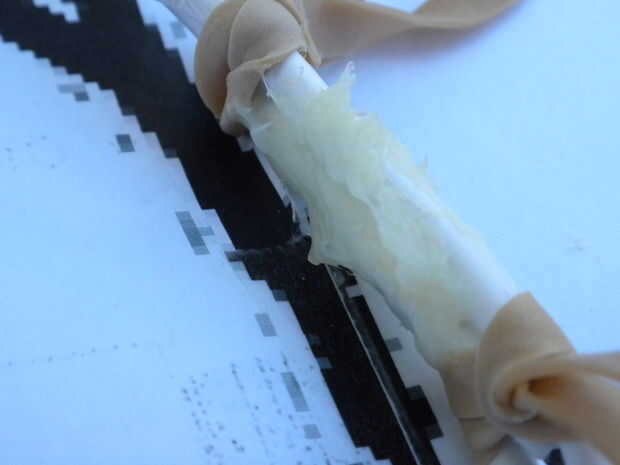 Después, mezclar el epoxi y extensión de las articulaciones (gustaba soldador plástico Devcon para esto. Si sus suspensiones no son cubiertos en plástico, sugiero que se utiliza un epóxico diferentes). Dejar pasar su tiempo de trabajo (15 minutos para mí) y luego retire las bandas de goma. Luego, poner epoxi donde estaban las gomas.