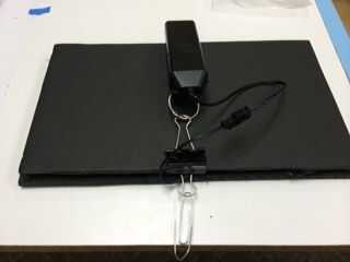 También puede dejar un hueco para un clip binder, que también es útil para colgar la fuente de alimentación en particular si cuelga de una ventosa en la ventana del coche. El conjunto es muy ligero por lo que se cuelgue en cualquier ventana limpia.