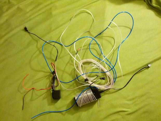 EL alambre (sólo usé azul y blanco porque eso es lo que tenía en mano, si me esta construyendo desde cero probablemente utilizaría un bunc de diferentes colores) (una buena fuente para el alambre de alta calidad es elwirepros.com, pero eBay tiene algunos tramos bastante buenas de alambre con controladores libres super barato)