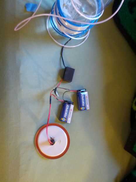 La mochila de fuente de poder que hice es bastante simple. Tiene dos pilas de 9V en serie para proveer una fuente de 18V. Luego se pasa a través de un regulador de voltaje de 12V a 12V para el módulo de controlador EL alambre, que alternadamente está conectado con EL cable de la fuente. Utilicé un botón montado en la parte superior de la jarra para encender y apagar la lámpara. Tengo un par de fotos que esta fuente de alimentación a continuación. Para la alimentación de la Lomita, pegué la mochila sobre la espalda de la jarra. Originalmente tenía el poder de la fuente en el centro de la jarra, pero no parece tan cool.