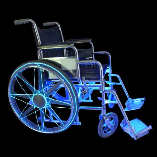 Engalana esta silla de ruedas normal con EL alambre en los radios y luces debajo del asiento. La luz es increíblemente brillante, así pongo debajo del asiento y la silla de ruedas todo da un brillo luminiscente que luce genial en la noche. Sin duda sería difícil perderse con un viaje como este en la noche.