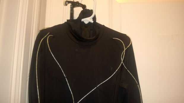 Tron. juego de Daft punk el alambre! disfraces de HalloweenPresentado mi diseño con hilo amarillo, luego ordenó a unos 100 pies de alambre. El color que elegí fue rojo-naranja. Mano cosió el cable con una chaqueta de cuero y vaqueros regular con acab