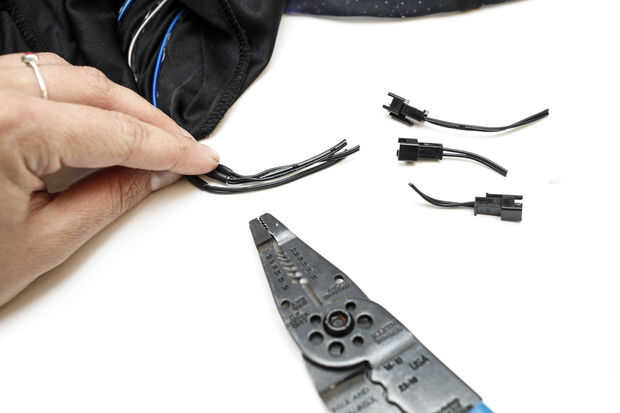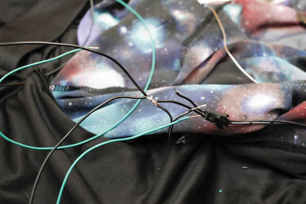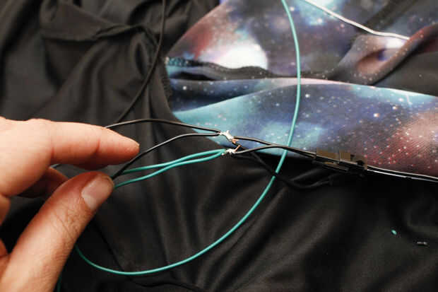 Había reunido los extremos del cable EL y les cortada. Los cables están marcados, que hace muy fácil. Fundido/soldado todos los cables con rayas blancas y luego hizo lo mismo con todos los cables con rayas negras. A partir de ahí corrí cables hacia donde quiero conectar mi batería. De esos plomos largo del material EL, luego reciclé uno de los extremos había cortado y vuelto a conectar por consiguiente.