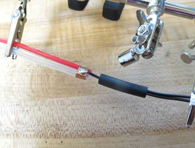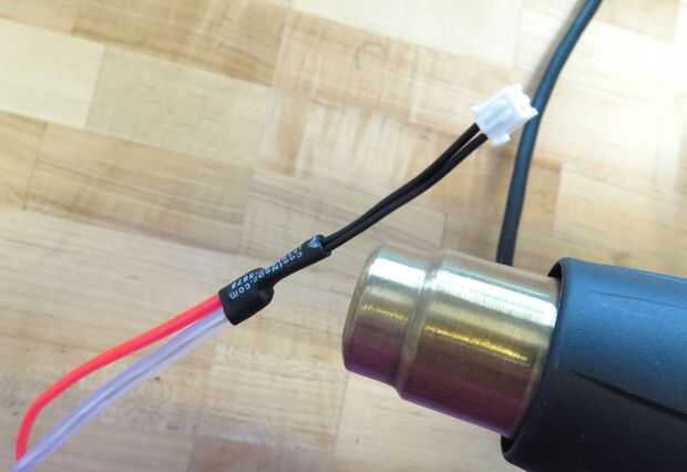 Una vez que se suelda, utilice una pistola de aire caliente, más ligero o secador para la tubería del encogimiento sobre las conexiones.