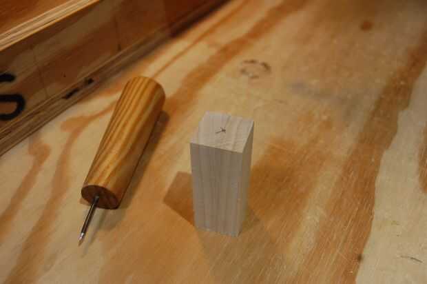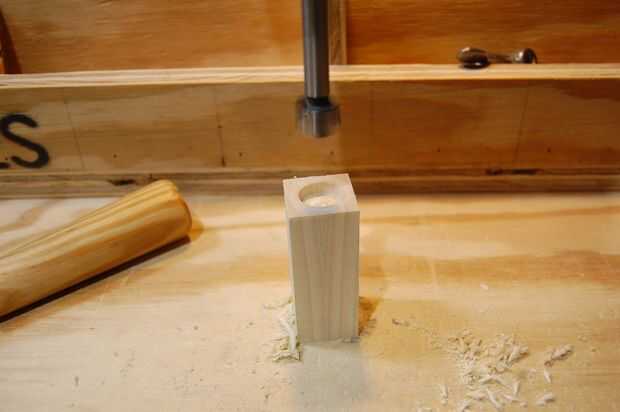 Para la Reina, sólo encontré el centro de uno de los extremos y perforar un agujero de 5/8" a 1/2" de profundidad con una broca fortsner