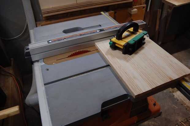 Nota: Generalmente trato de evitar paneles de corte en la Sierra de mesa que son más anchos que su largura total, pero mi gran trineo corte transversal no es muerto fiable al 100%. Era cuando primero lo construí, pero madera le encanta mover cuando no quieres hacerlo. Tenía una nueva hoja de combinación de 60 dientes, era consciente de mi velocidad y utiliza a la pinza.