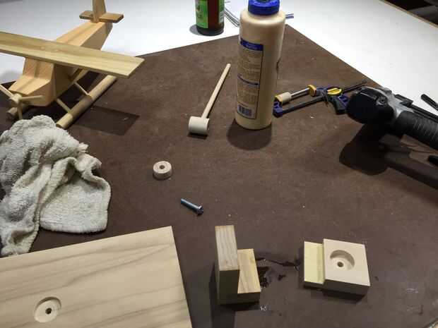 Sentí que el avión necesitan un soporte de exhibición... y necesitan la capacidad de mantener el avión en ángulos diferentes. Dejé de cortar de la álamo offs, alguna acción de espiga y un poco de hardware.