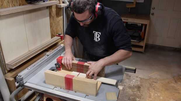 Las alas se arrancó al ancho de la Sierra de mesa y corte a longitud de utilizando un trineo pequeño. La sección del estabilizador vertical del ala de cola fue cortar la cinta y en forma con el. Tiene una forma cónica y bloqueos sobre el ala de cola porque me gustó la forma en que veía.