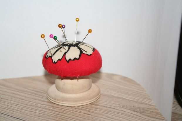 Usando una brújula, dibujar un círculo de la tela y recortar con unas tijeras afiladas. El diámetro del círculo dependerá de qué tan amplia es tu mesa, y cómo bulbosa desea que la parte superior para ser. Para un diámetro de 55mm de mesa, utilicé una pieza de 16cm de diámetro de tela (pero recortar por que fui).