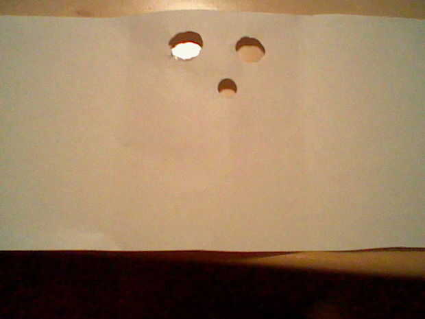 Corte tres agujeros en el papel.