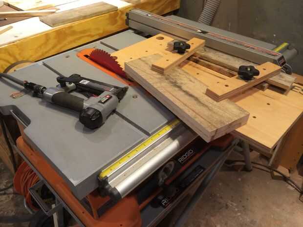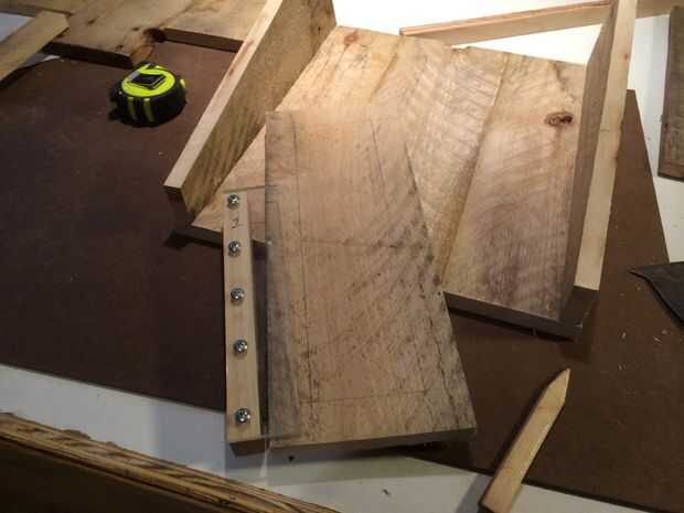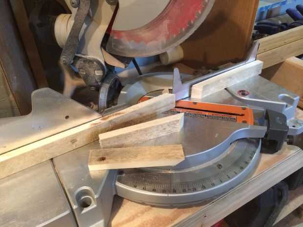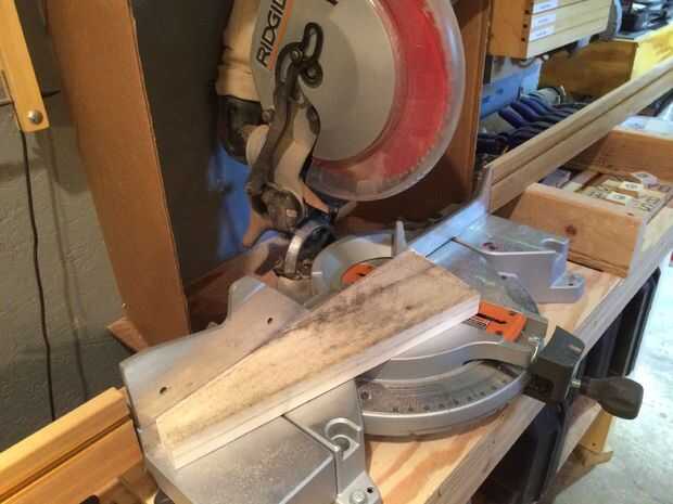 Para los lados, viró dos tableros (cortadas a la longitud deseada) junto con clavos y cortar una conicidad de utilizando un trineo ahusado. Para el ángulo superior, usé una sierra para cortar ingletes.