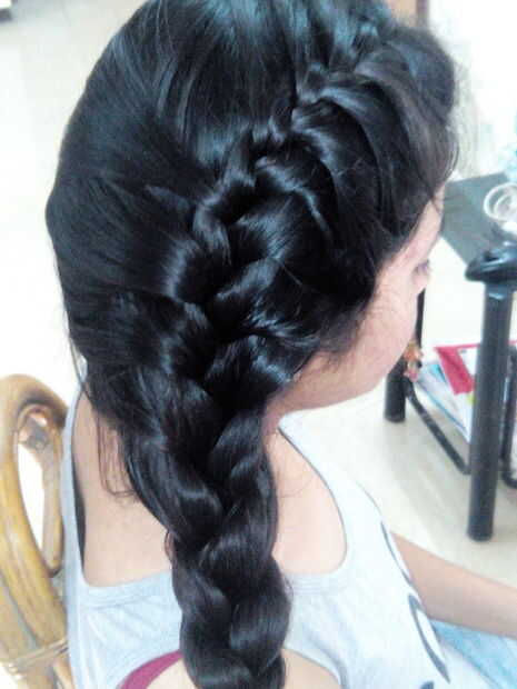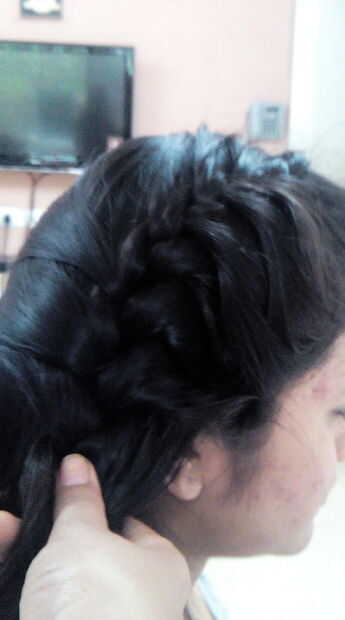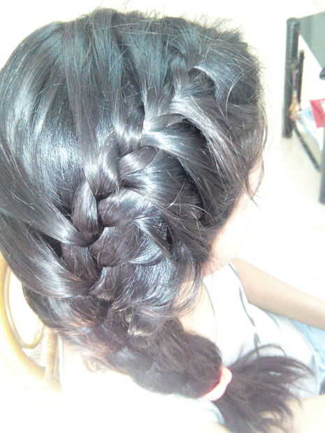 cabello de lado y mantenga en trenzar, hacer puñetas el video para más detalles