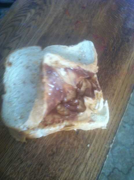 esto es un gran sándwich de desayuno/almuerzo/cena que abarca tres grupos de alimentos de desayuno, huevos, queso y tocino. Este tipo de variación en un "sapo en el agujero" o "huevo en una cesta" y un sándwich de queso a la plancha. E