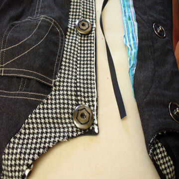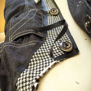 añadí cinta negra en los extremos de las piezas de tela de la chaqueta para las miradas y para proteger los extremos de la tela de ripeo/rasgado ex. Recomendarte pegado y acostarse la cinta poco a poco en un tiempo y dejar que el pegamento seco durante 30 minutos o menos antes de continuar con pegado y acostarse de la cinta.