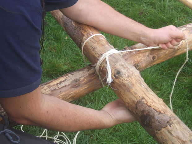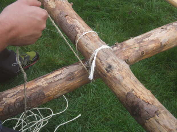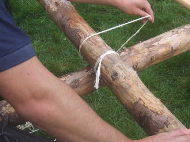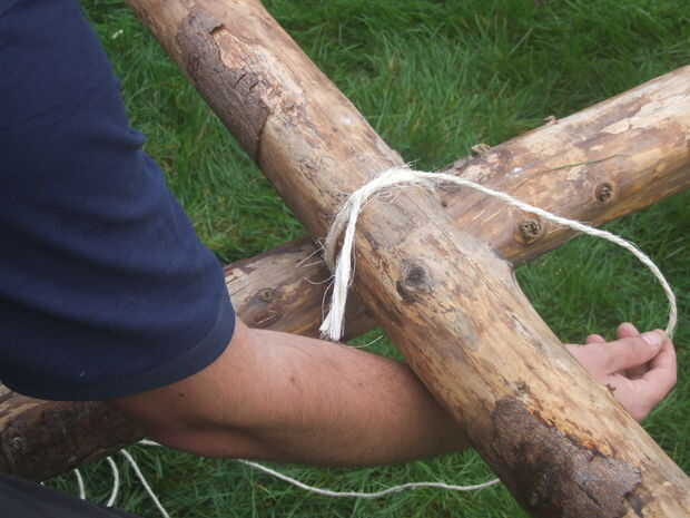 Una vez que tengas tu ballestrinque atada en el poste superior puede iniciar la envoltura.