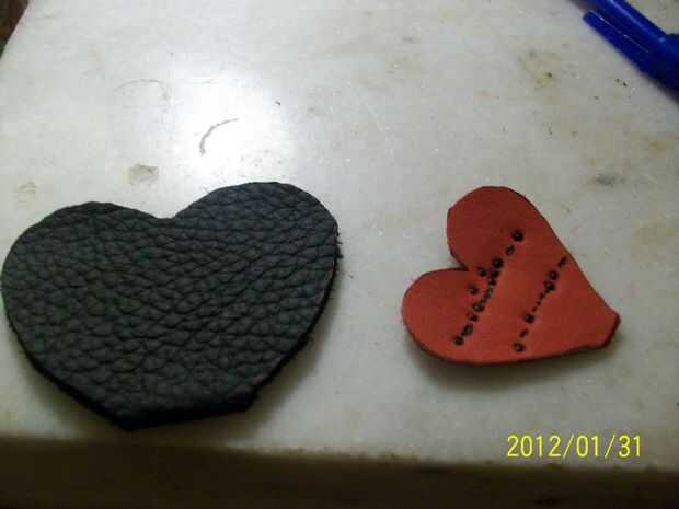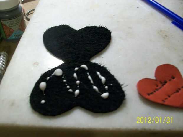 Usando el cemento de contacto unir el corazón (también trimed apagado esos pelos poco usar cortauñas)