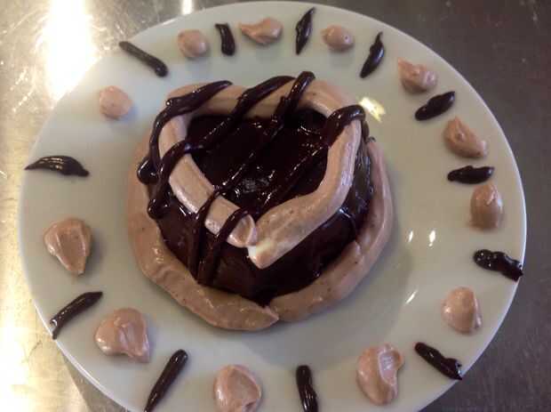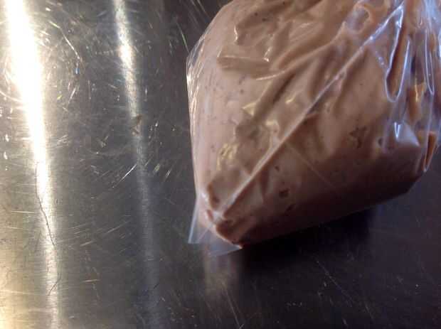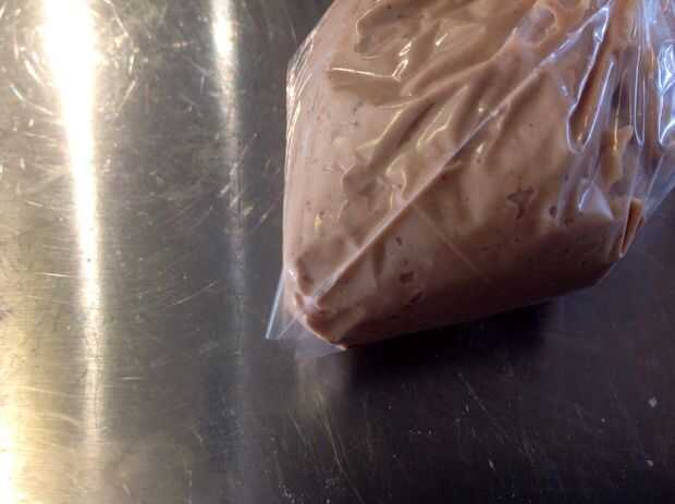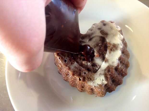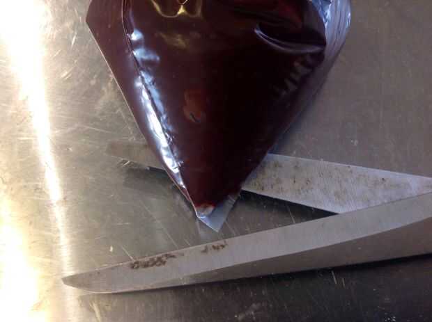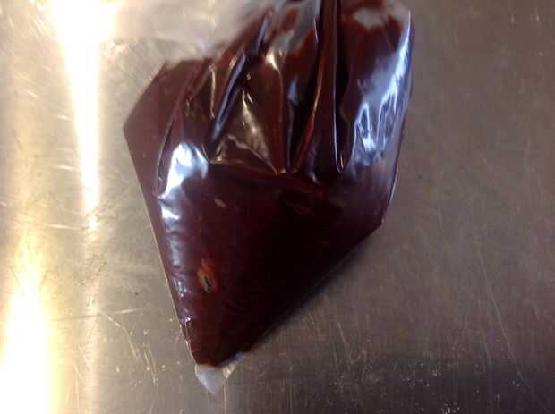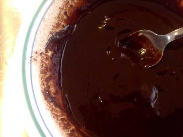 Poner el chocolate dentro y en la parte superior y extenderlo por todo el pastel.