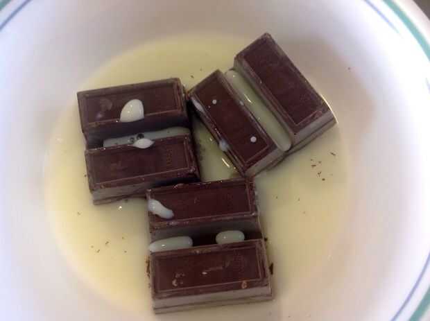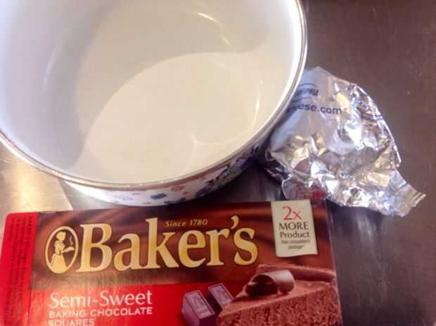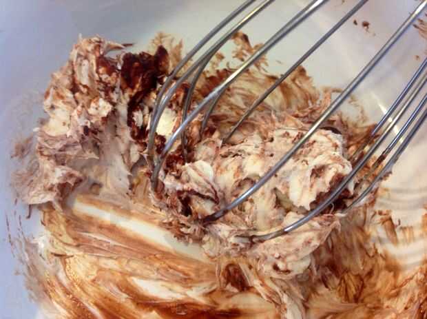 Fundir el chocolate y añadir un poco a la crema de queso.