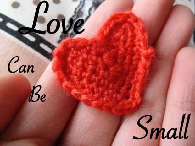 El amor puede ser pequeño: mostrar su amor en un corazón de ganchillo pequeño.