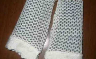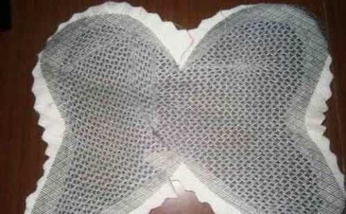 Para hacer las mangas y las alas para el ángel, corte ellos fuera de la red plástica o la botella y sujete a la tela al igual que en el paso anterior.