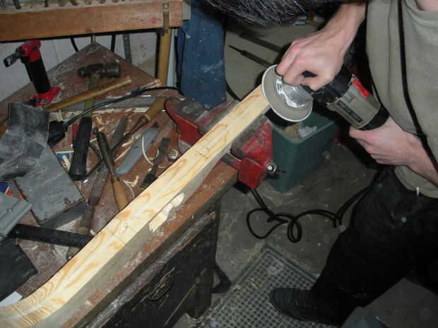 Ahora por lo que posiblemente es el proceso más largo.. .giving que áspero talladas en trozo de madera una forma agradable que sea cómoda para sostener...
