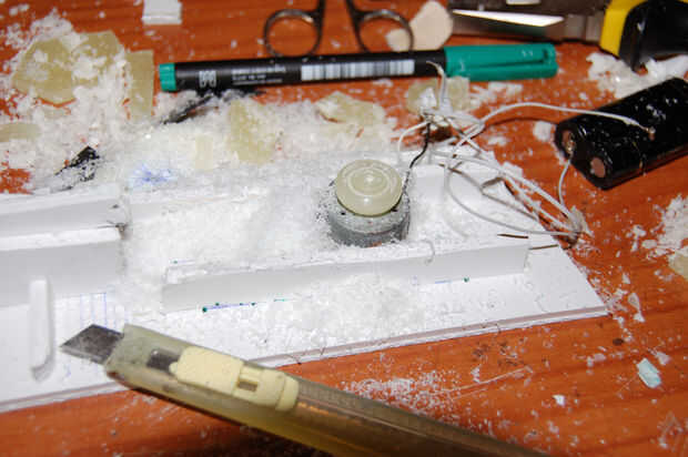Se corta un círculo de PVC, con un agujero en el centro así que puede ser puesta en el eje del motor.