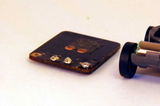 Marca contacto de cable rojo del panel solar como positivo y marque el otro como negativo. Desoldar los cables del panel solar y retire el panel solar del corredor Solar Mini. Cepillo una cantidad abundante de pegamento Krazy en una cara de su anillo, y presionar ese lado ángulo recto en el centro de la parte posterior de su panel solar de miniatura, mientras asegurándose de no cubrir los contactos de cable, o el +-las marcas, con pegamento. Espere que se seque. Haga clic en el botón "Next Step" para ver cómo usar el anillo.