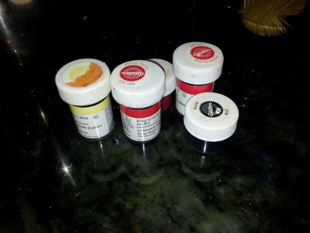 • Naranja y colorante negro. (el naranja puede ser difícil de encontrar así que siempre puede mezclar amarillo y rojo que es lo que hice). Tuve que realmente pasar algún tiempo en ella hasta que me dieron mi color deseado, para no sentirse mal si usted no puede conseguir. Es un gran blanco que tienes que borrar!