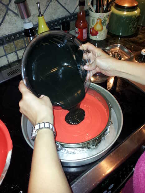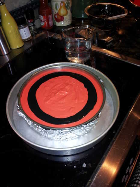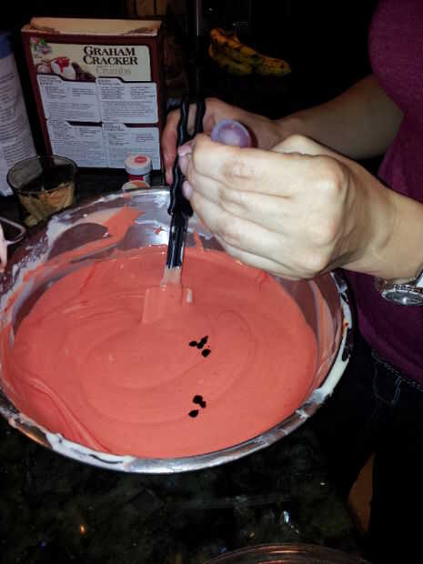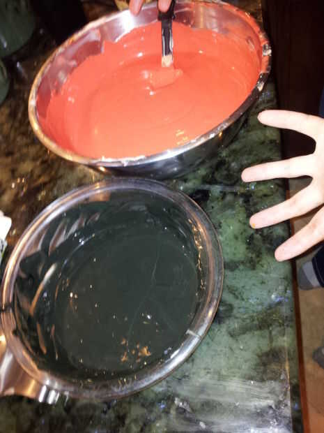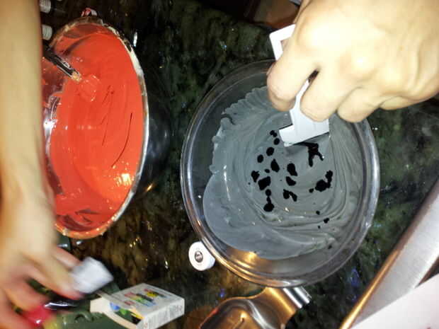 • dos recipientes de mezcla separadas para los dos diferentes colores. Hice el negro una porción más pequeña.