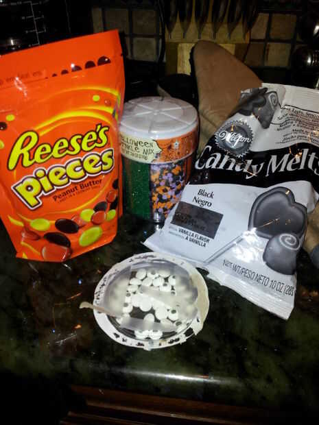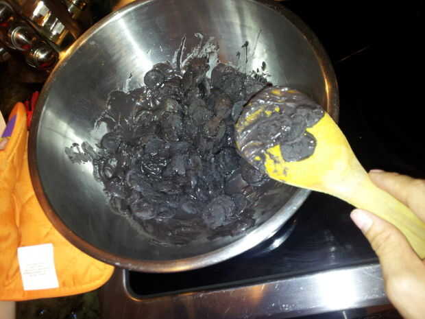 • 1 libra de chocolate blanco se derrite a teñido negro.