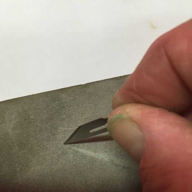 Frotar sobre una piedra de aceite o papel de lija hasta que quede totalmente embotada.