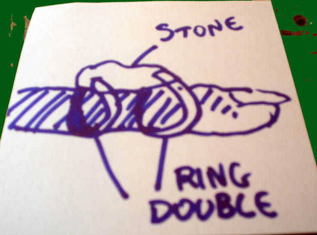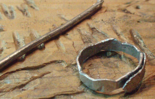 Ahora grap el alambre de metal alrededor del cilindro de metal y comienzo golpeó para acoplar el cable y darle su arte personal en el alambre martillado. Se necesita no es difícil y no cualquier especial habilidad. Pero recuerde flatt de la misma manera y sólo para ie 2 hits el cable... otra cosa vas a tener un anillo flatterned diferentemente en lugares a lugares. También durante esta parada el trabajo y el comienzo tratan el anillo para tener una idea de cómo encaja en su/su dedo.